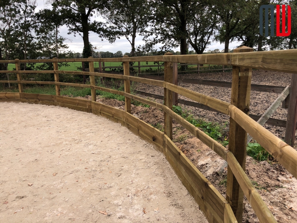 - Uitvoering: 2 of 3 liggers met kantplank of geheel dicht met planken, palen vlak of diamantkop.